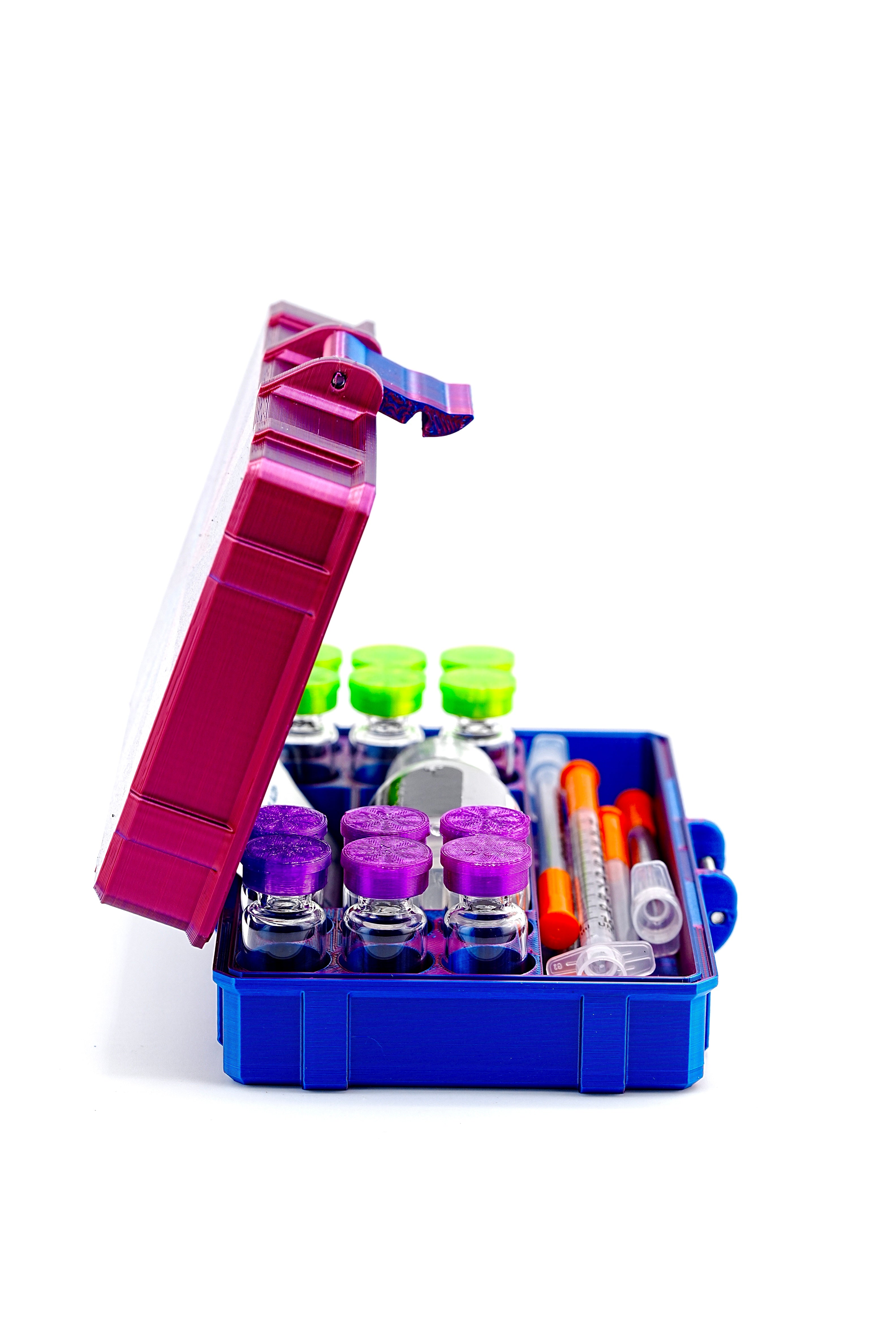 Perfect for travel, gym, clinic, or research use, this 12-slot vial case delivers dependable organization and protection for vials and injection accessories in one compact system.