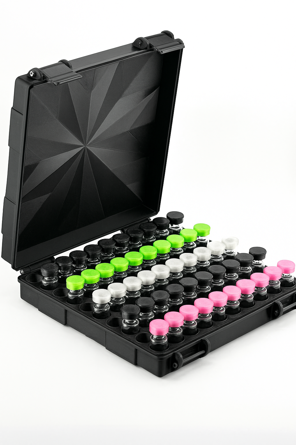 Manage a full inventory with this high-capacity vial storage case 📦 Designed for labs, clinics, and serious collectors, this rugged case securely holds up to 100 standard 3 mL vials in a clean, organized layout for fast access and reliable protection.