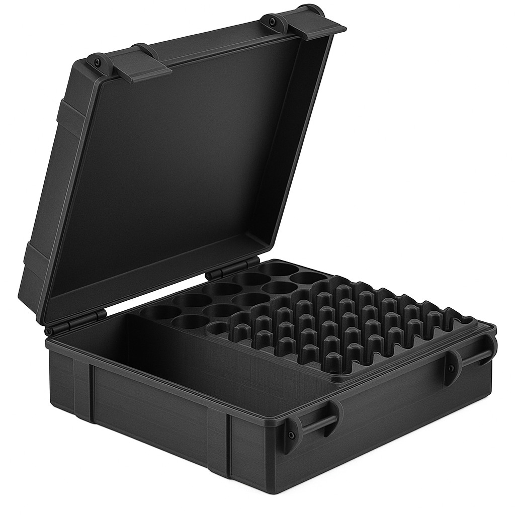 Perfect for travel, gym, clinic, or research use, this mixed vial case delivers dependable organization and protection for users managing multiple vial sizes in one secure system.