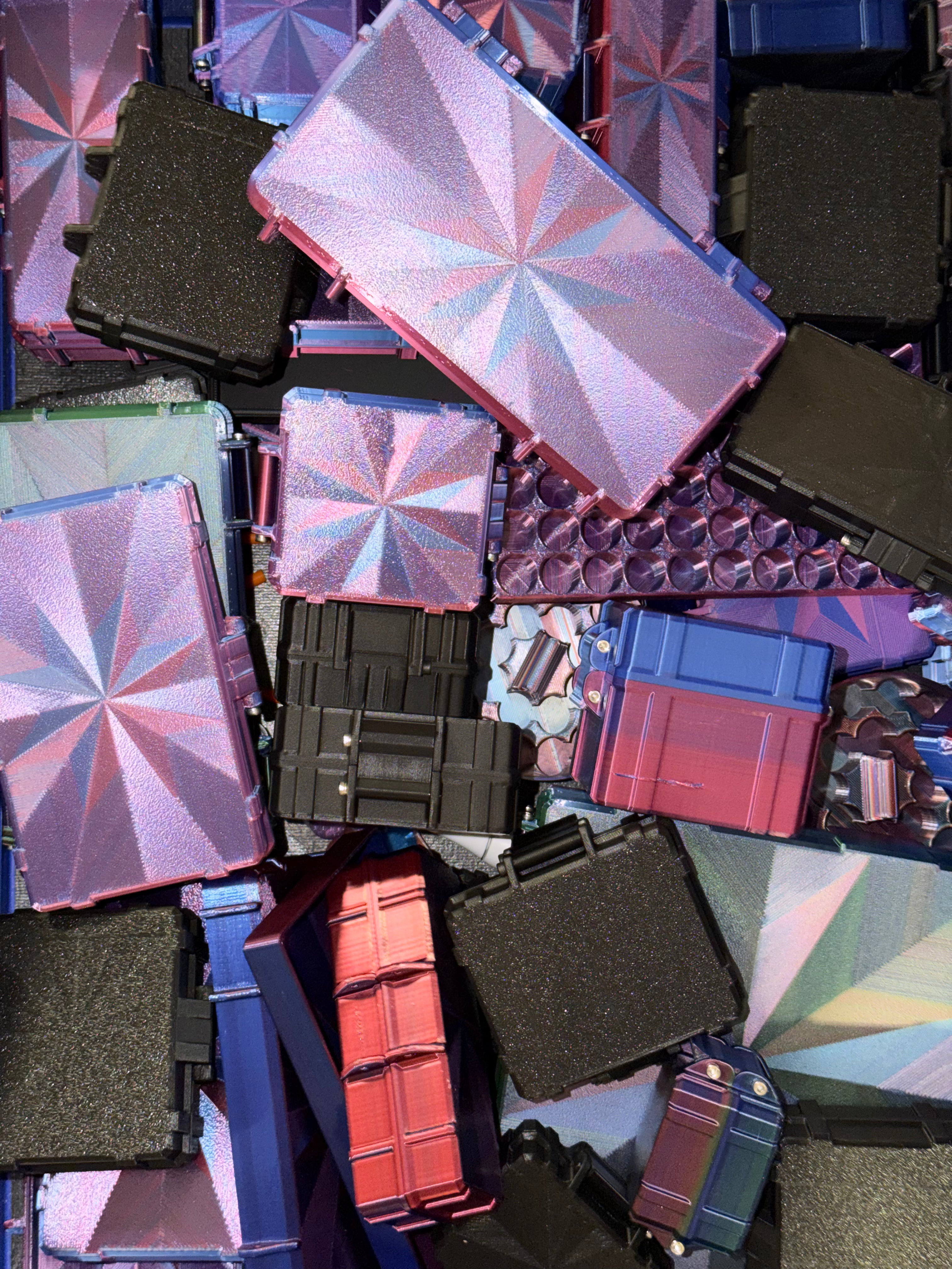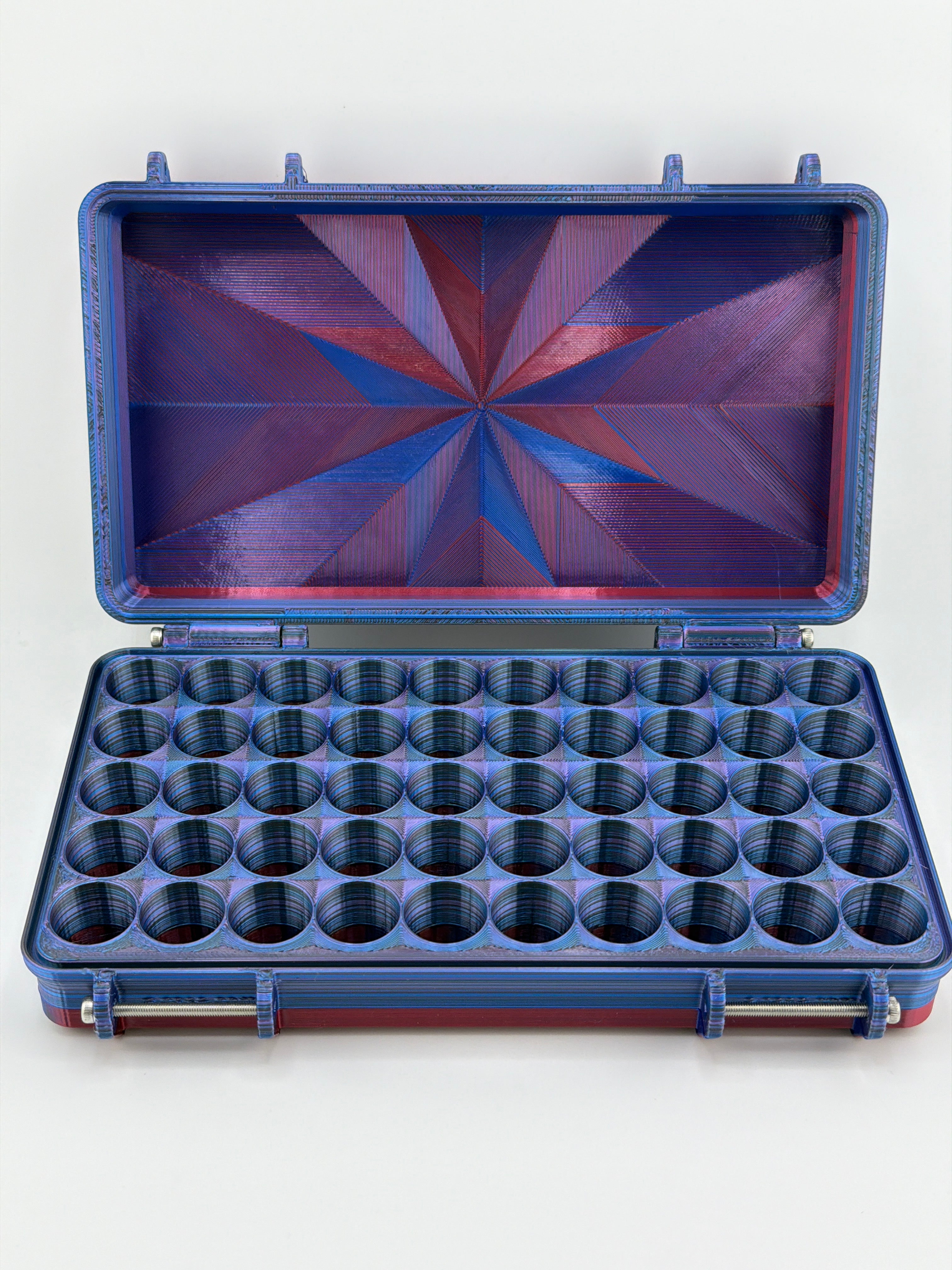 The RGB Metallic 200 Jumbo Case delivers the same high capacity storage with a striking reflective finish.